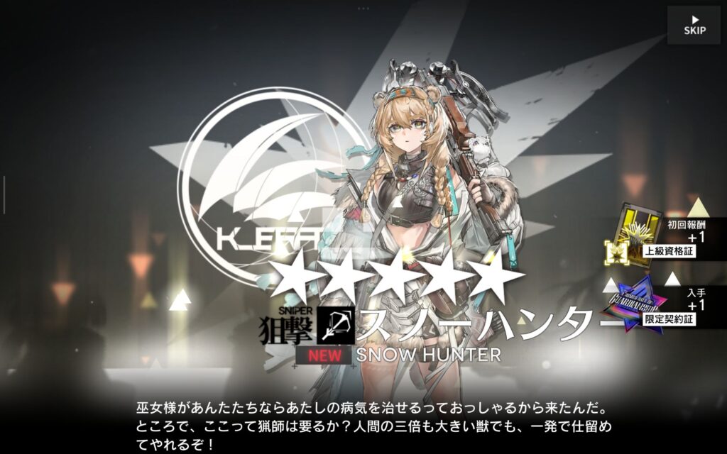 他には、購買資格交換所のラインナップが更新されて、新たなオペレーターがお迎えできるようになりまして、こちらも早速。