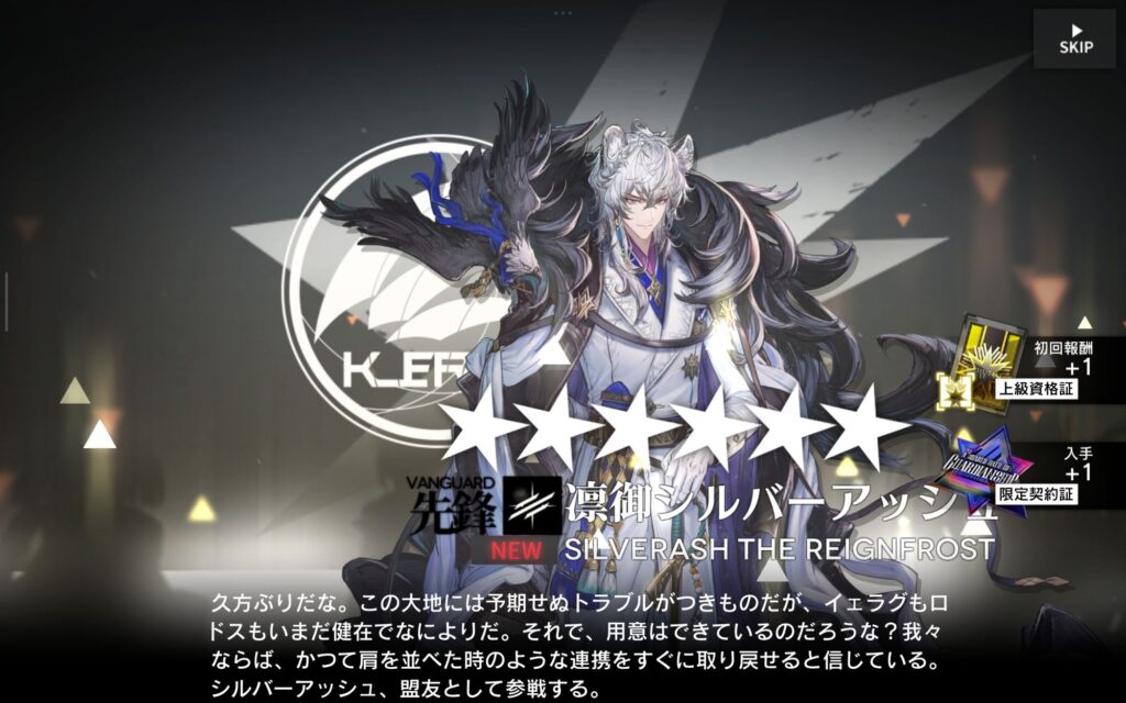 シルバーアッシュはゲームを始めた時のリセマラで引いて以来、長らく第一線で頑張ってくれたしその異格オペレーターでもあるので、今回はいつも以上にアツいです。