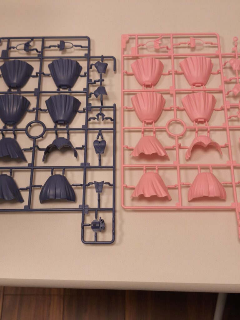 普段、コトブキヤ特典のアナザーカラーパーツが付属してきても結局もったいなくて使えないというパターンがほとんどですが、今回はこのピンクの方で組む事にしました。
