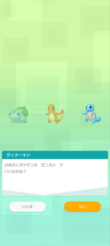 始めるとまずはやっぱり赤緑の御三家を選ばせてくれたので、ここはいつも通りのぜにおで。