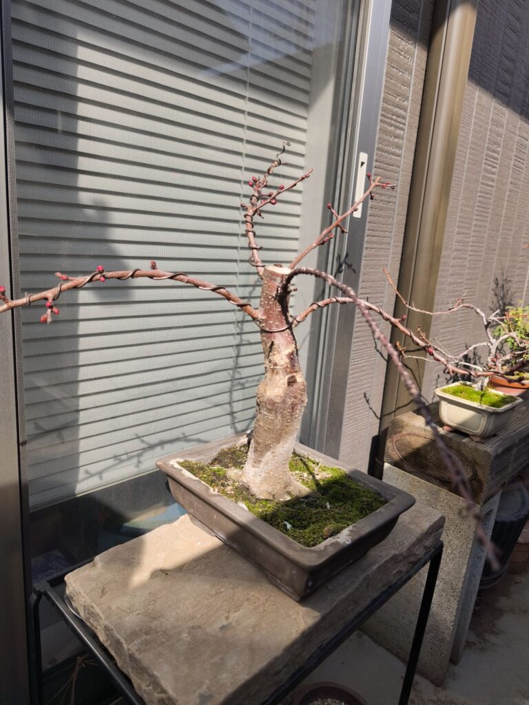 【ブログ】もう春かよ。 投稿日時: 2026年2月24日 投稿者: muratan 盆栽の話。 昨日の20℃超えの日から、ベランダの様子が変わりました。 我が家で一番大きいあんずの鉢。 蕾ができてる! もうすぐ咲くんかお前!? まだ2月なのにね。 早いね。 で、よく見たら桜の方も蕾の蕾みたいのができ始めていて。 もう春が来るんですね。 まぁ2月とはいってもあと数日で3月になるんだもんね。 そんな感じで。 冬の間は日が短いしお手入れする事もなかったから影の薄かった盆栽ですが。 そろそろ存在感を出してきました。 もうすぐ大きな変化があると思うので、また紹介します!